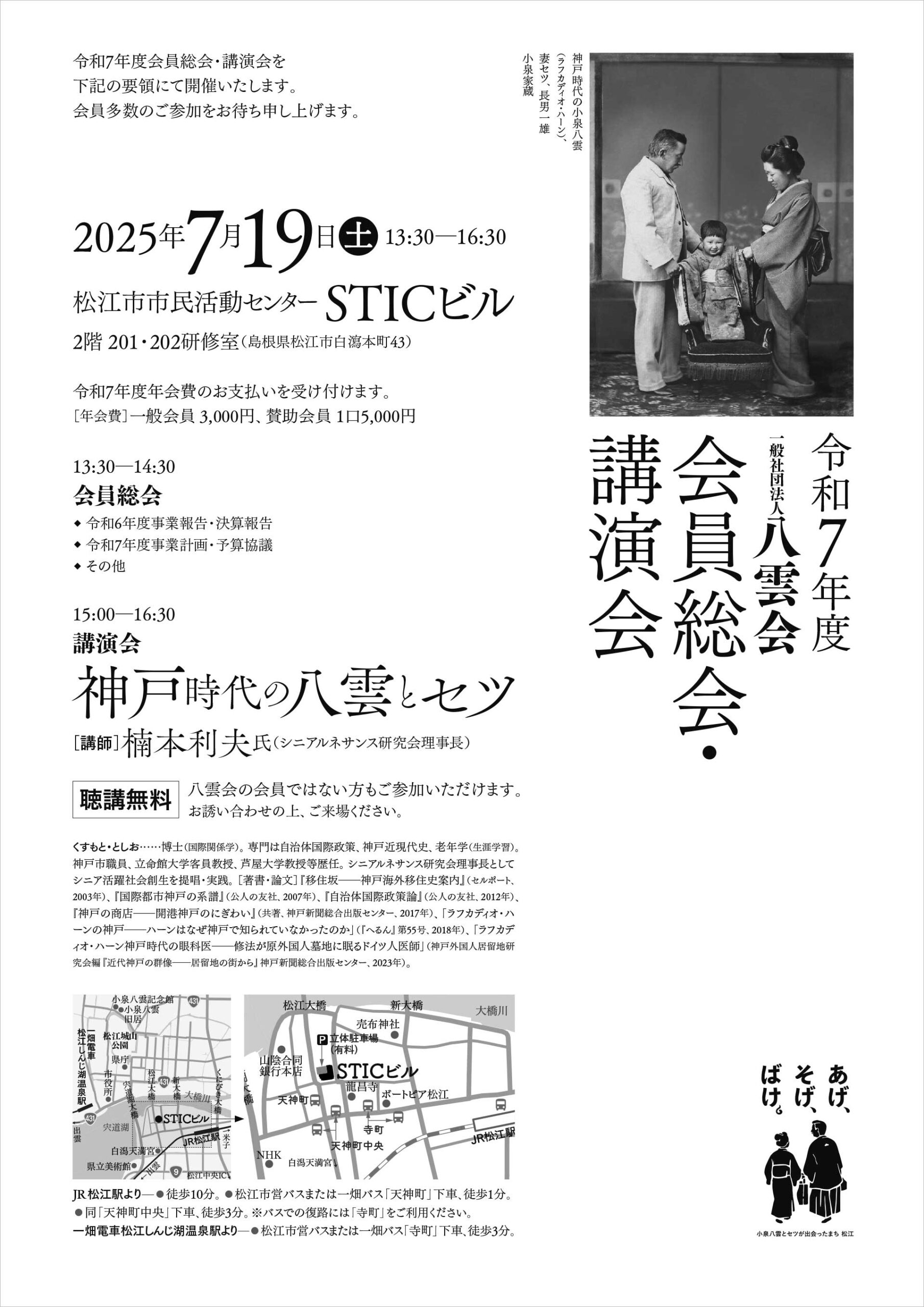 - 小泉八雲とセツと松江と(令和7年度島根大学総合博物館アシカル講座第2ステージ)