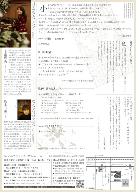 米山麻美 オルガン・リサイタル—八雲と響きあう旅 チラシ 裏